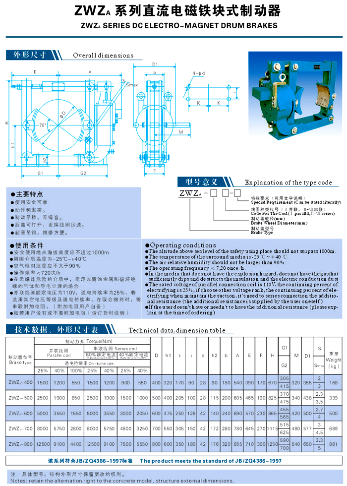 制動器,電磁制動器,電磁塊式制動器,塊式制動器,直流電磁塊式制動器,ZWZA,ZWZA直流電磁塊式制動器,制動器廠家