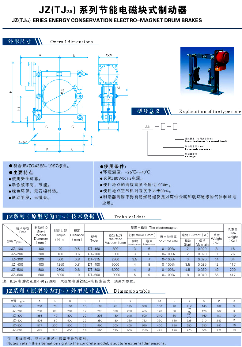 制動器,電磁制動器,電磁塊式制動器,塊式制動器,直流電磁塊式制動器,JZ(TJ2A),JZ(TJ2A)直流電磁塊式制動器,制動器廠家