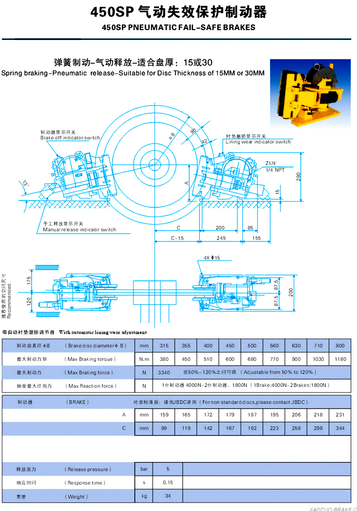 制動器,盤式制動器,氣動失效保護制動器,氣動失效盤式制動器,450SP,450SP氣動失效保護制動器,制動器廠家
