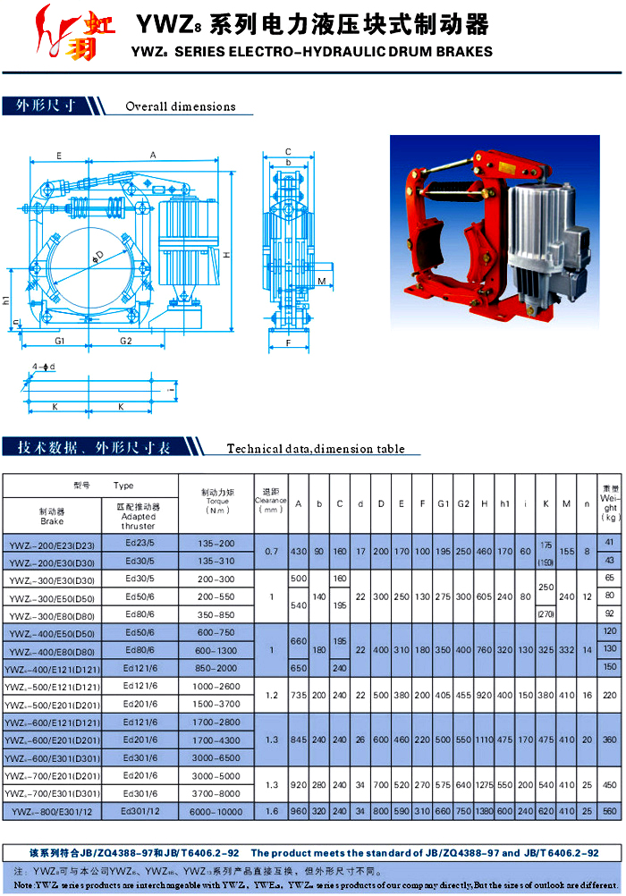 YWZ8系列電力液壓塊式制動器