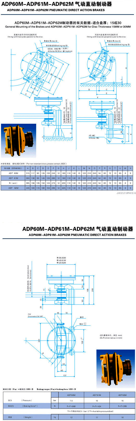 制動器,盤式制動器,氣動直動制動器,ADP60M-ADP61M-ADP62M,ADP60M-ADP61M-ADP62M氣動直動制動器,制動器廠家