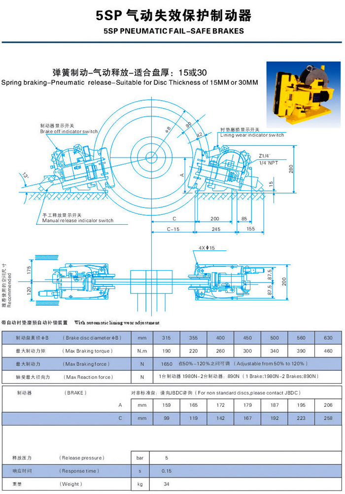 制動(dòng)器,盤式制動(dòng)器,氣動(dòng)盤式制動(dòng)器,氣動(dòng)失效保護(hù)制動(dòng)器,5SP,5SP氣動(dòng)失效保護(hù)制動(dòng)器,制動(dòng)器廠家