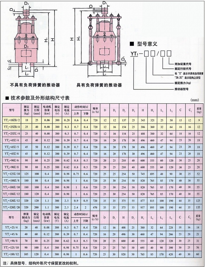 推動器,液壓推動器,電力液壓推動器,YT1,YT1電力液壓推動器