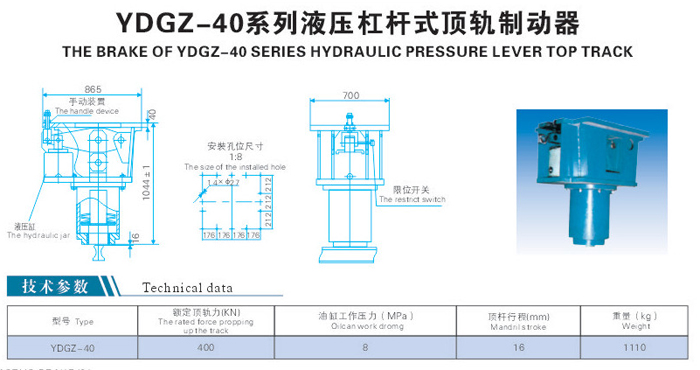 YDGZ-40液壓杠桿式頂軌制動器,YDGZ-40,安全防風制動器系列,制動器